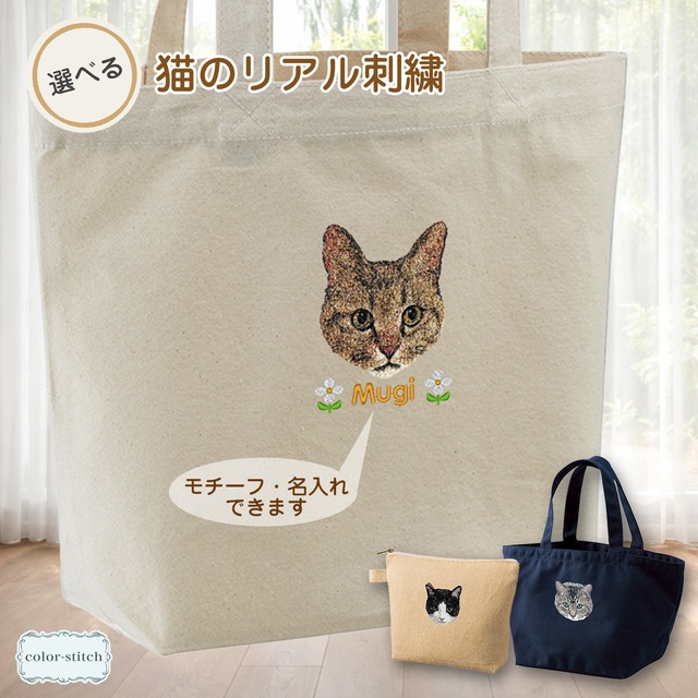選べる猫のリアル刺繍バッグ|うちの子みたいな刺繍|名入れ可|トートバッグ / ポーチ