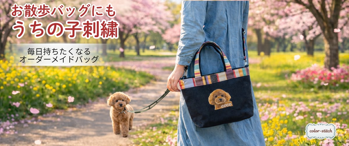 『うちの子と、ずっと一緒にいたい』 そんな想いをカタチにする、 世界にひとつだけのオーダーメイド・うちの子刺繍バッグです。 ✨ 大切なうちの子の写真そのままにリアルな刺繍 ✨ 毛並みや表情・その子らしい雰囲気を再現 ✨ 一点一点に心を込めた高精度刺繍 ✨ お名前・文字入れ無料 ✨ 刺繍精度【ファイン】選択でワッペンプレゼント ■ ギフト・メモリアルにもおすすめ ✔ ギフト:お誕生日や記念日の贈り物に ✔ ペットロス:ずっとそばに感じていたい ✔ オーダーメイド:世界にひとつだけ ✔ オリジナルラッピング袋付き ■ 刺繍精度(刺繍サイズ:10cm以内) 【ノーマル】 一般的な精度の写真刺繍です。 やや荒さを感じる場合がありますが、それも刺繍ならではの味わいです。 濃色バッグでは生地色が透けて見えることがあります。 【ファイン】 当店自慢の高精度刺繍。 目・鼻・口など細部まで、写真に近い再現が可能です。 【ファインカスタム】(2匹対応) 2匹刺繍の場合、1匹あたりのサイズが小さくなるため 再現精度はやや控えめになります。(1匹 約5cm前後) ※ 刺繍糸のみで表現するため、写真と完全に同一にはなりません ※ 写真によってはモノトーン表現の再現性がやや下がる場合があります ■ 刺繍は、あなたとその子の物語から生まれます。 「なぜ刺繍に残したいと思ったのか」 刺繍に決めた想いを大切にしながら制作しています。 ・一緒に過ごしている大切な家族 ・虹の橋を渡ったあの子への想い ・贈る方への気持ち あなたの想いが、よりその子らしい刺繍作りにつながります。 一言だけでも備考欄や質問欄にお聞かせください。 ※任意です。未記入でも問題ございません。 ■ 発送までの流れ (1) ご購入後、写真を送信【必須】 → 当店メール:[email protected] → または、担当からの案内メールに写真を添付してご返信ください※1 (2) 刺繍構図(デザイン)のご確認【必須】 〈写真受領後、1週間前後〉 (3) 刺繍イメージの確認【任意】 〈ご希望の場合のみ対応〉 (4) 刺繍制作 ※2※3 約8週間(2匹の場合は約10週間) (5) 完成次第、発送 ※1 迷惑メール設定をご確認ください ※2 2匹刺繍の場合は制作期間が延びます ※3 年末年始・GWは前後する場合があります 【Instagram】 オーダー作品や制作風景を紹介しています。 https://www.instagram.com/color_stitch_jp/ 【掲載許可】 作製過程の撮影や配信/紹介をしてもよろしいでしょうか? ご了承をいただいた場合は、粗品をプレゼントさせていただきます。 ・OK/掲載を了承いたします ・NG/掲載を許可しない ■ バッグについて ペットとのリンクコーデを楽しめる、気分もアップのお散歩トートバッグです。 500mlのペットボトルも楽に入る丁度いいサイズ。 咄嗟の際も中のものを取り出しやすいマグネットホック付き。 ・サイズ:約 高さ23cm/幅32cm(底幅20cm)/マチ12cm ・生地:綿、ポリエステル ・ポケット:内ポケット1 【マルチネックストラップ】 付属のストラップカードでバッグやスマートフォン等をぶら下げられます。 ・長さ:約173cm~約136cm ・生地:綿100% ・付属:ストラップカード×1 ■ オプション ご注文に至ったお気持ちなど備考欄にご記入ください。 ※こちらは任意項目です。 【ネーム】 8文字以内/アルファベット or 数字 【書体・色】(選択なし:筆記体・黒) 書体:筆記体・丸ゴシック体 色:黒・白・ゴールド・ベージュ・ネイビー・カーキ・ピンク ■ 注意事項 ※顔のみの刺繍となります(全身不可) ※できるだけ明るく、解像度の高い写真をご用意ください ※写真の画質により仕上がりに差が出ます ※刺繍イメージは画像データのため、実際の刺繍とは若干の差異があります ※フォト刺繍(うちの子刺繍/リアル刺繍)は高品質の刺繍技法ですが、写真と完全に同一にはなりません ・著作権・商標のあるキャラクターは刺繍できません ・ご不明点はご注文前にお気軽にお問い合わせください ・モニター環境により色味が異なって見える場合があります 【レ・トワール・デュ・ソレイユ】 「太陽の生地」の名の通り、南フランスの村「サン ロラン デュ セルダン」で1860年に生まれた“伝統織物ブランド”。 【株式会社LTDS Japon】 日本の輸入総代理店として、レ・トワール・デュ・ソレイユの生地の輸入、バッグ・ファッション小物類の企画・生産、生地の販売。 ●【Q&A】うちの子刺繍について https//colorstitch.base.shop/blog/2026/02/06/204235 ●うちの子刺繍のご注文方法 https://colorstitch.base.shop/blog/2026/02/06/204901 ●上手な写真の選び方 https://colorstitch.base.shop/blog/2022/12/13/154431 ーーーーーーーーーーーーーーーーーーーーーー 【color-stitch/b521】