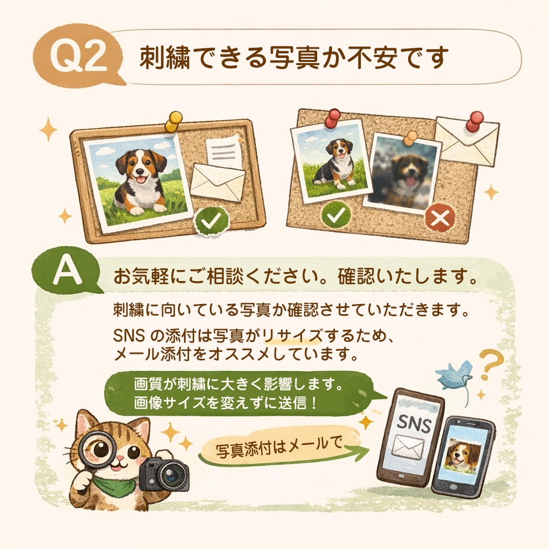 刺繍に向いている写真かどうか、確認させていただきます。