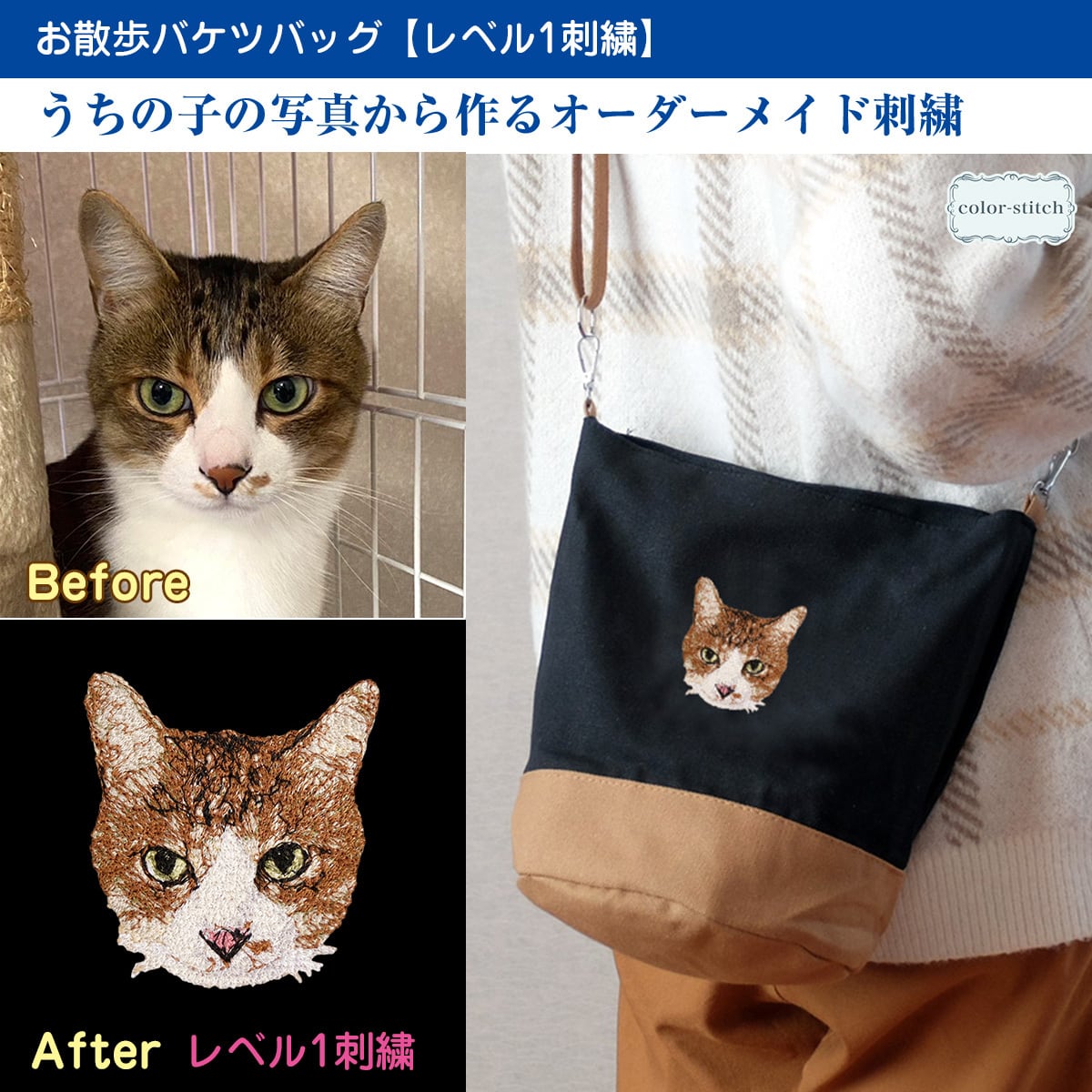【写真のように再現】 初めてのオーダーでも安心のレベル1刺繍 うちの子刺繍お散歩バケツバッグ b122