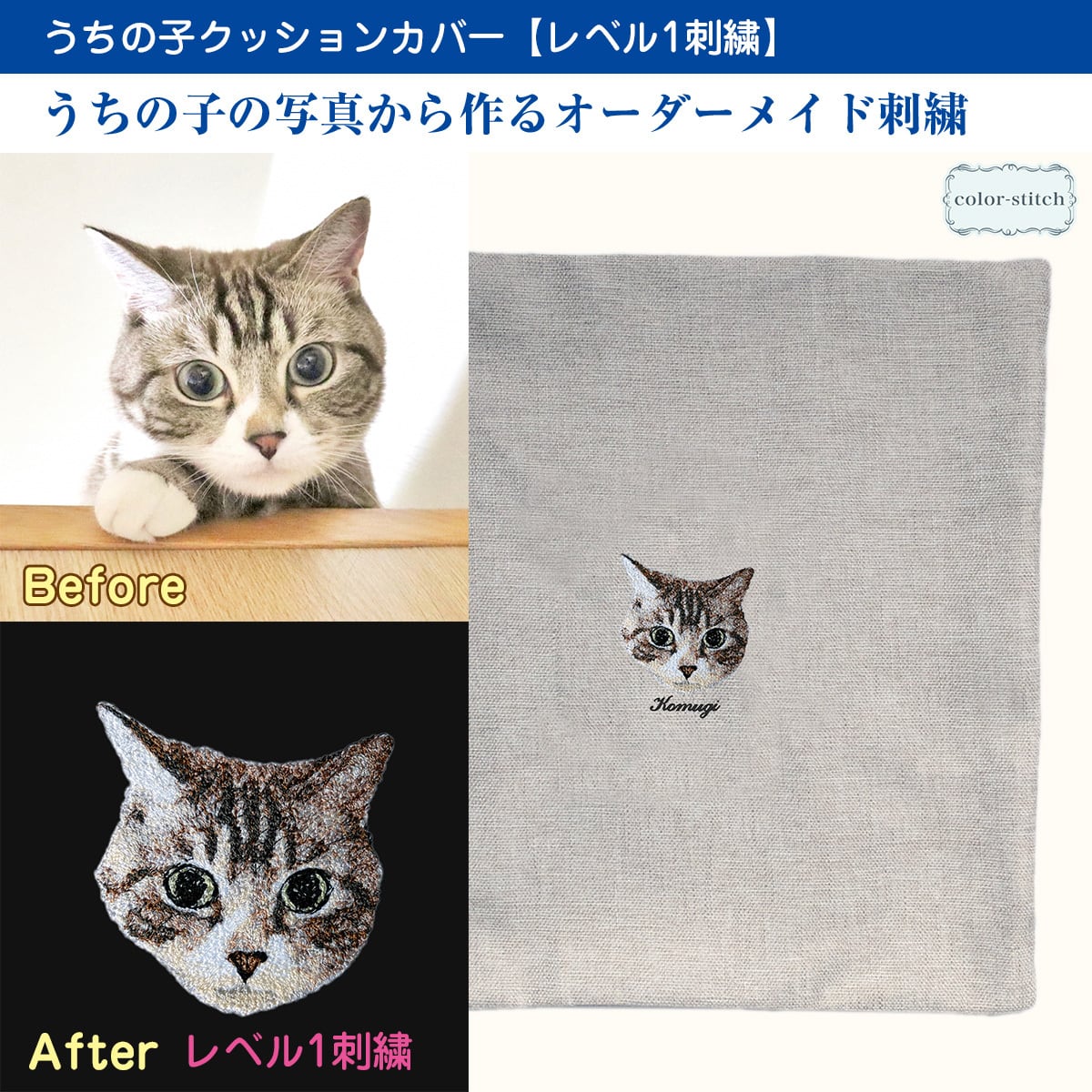 【写真のように再現】 初めてのオーダーでも安心のレベル1刺繍 うちの子刺繍クッションカバー c102