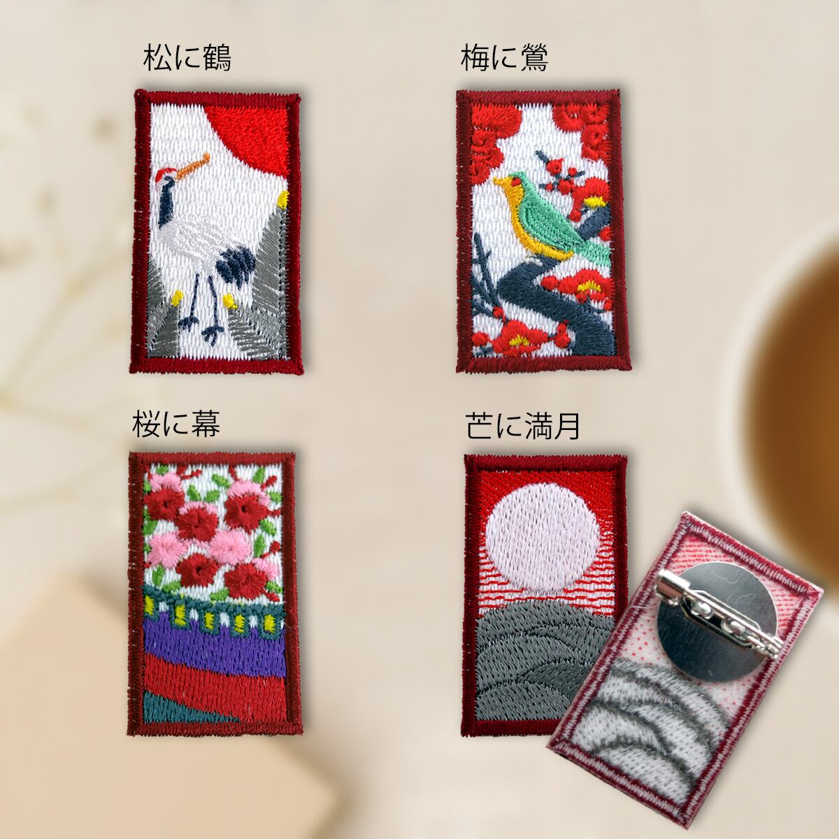 \小さな和の彩り/ 花札刺繍ブローチ|和モダンアクセサリー|ギフトBOX入り
