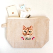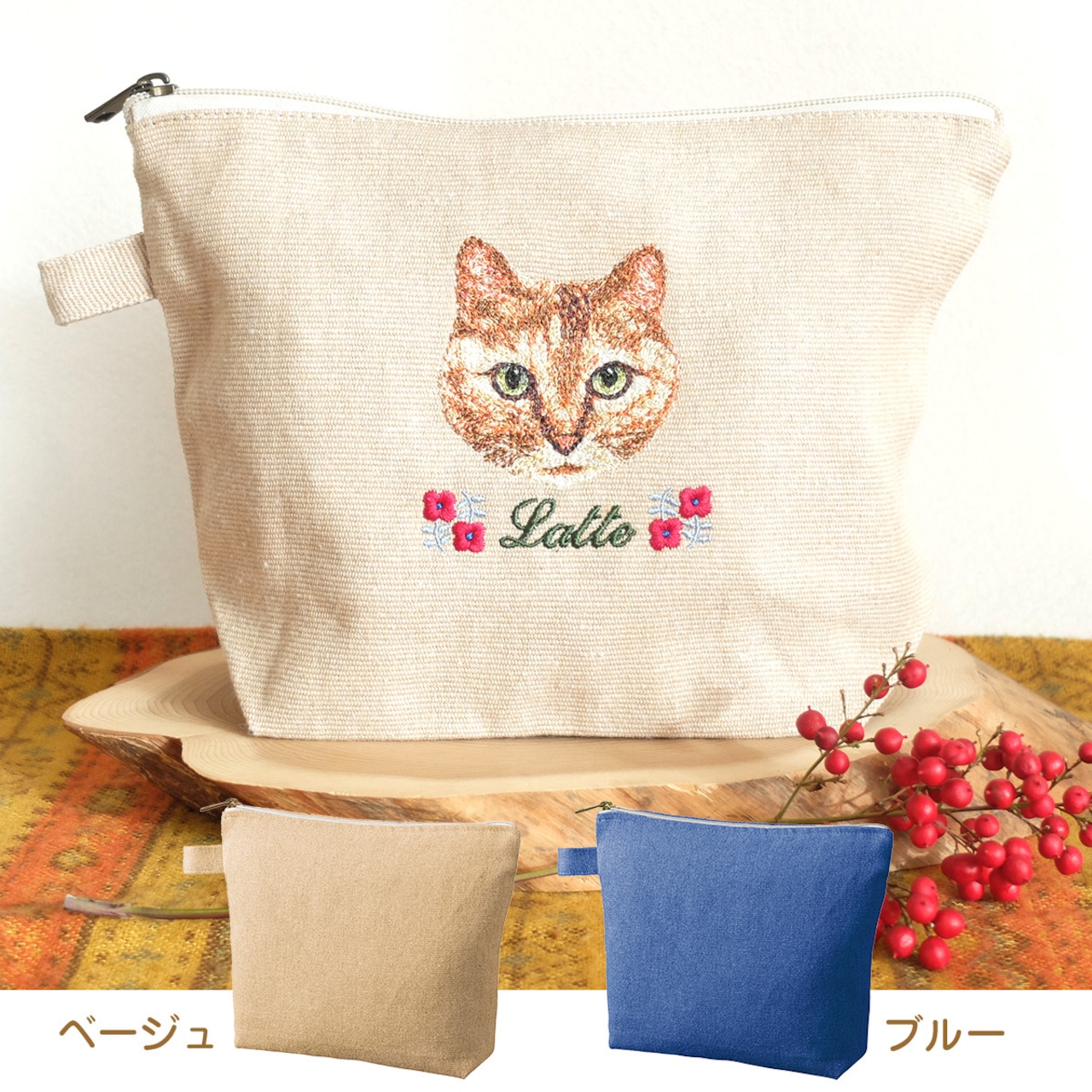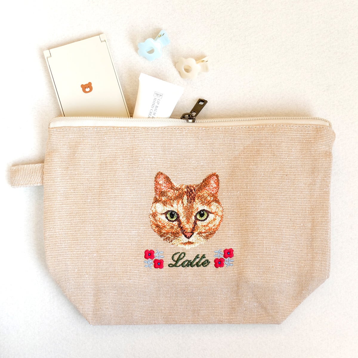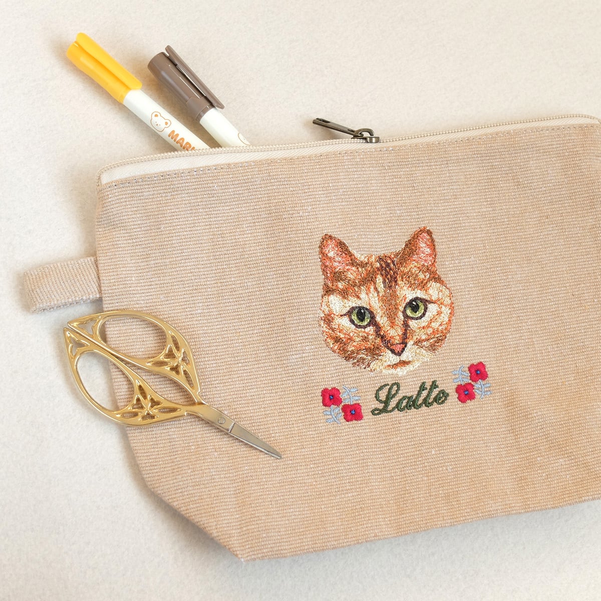 \ワッペンpresent/ ペット写真からつくるリアル刺繍|うちの子ポーチ|花飾り+名入れ|ギフト対応|オーダーメイド