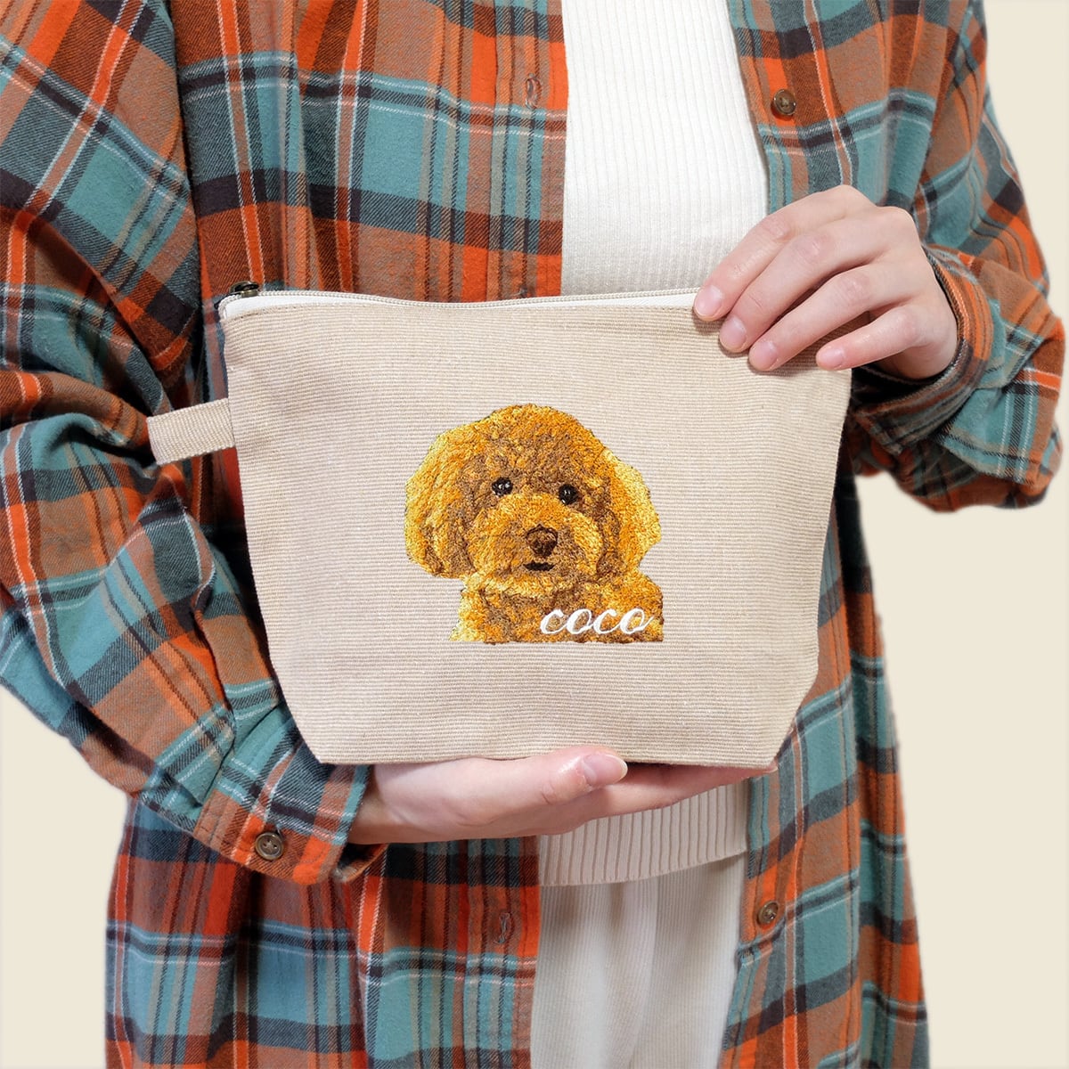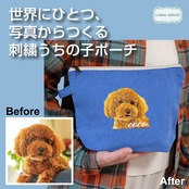 【オーダーメイド】ペット写真からつくるリアル刺繍|うちの子お散歩ポーチ|ギフトバッグ