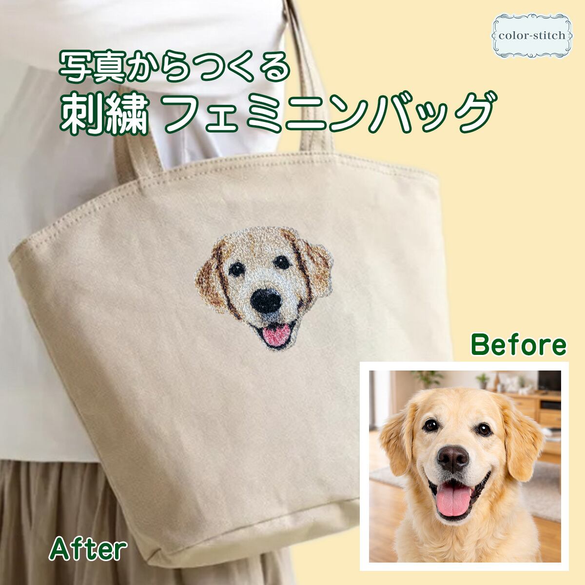 \ワッペンpresent/ ペット写真からつくるリアル刺繍|フェミニンバッグ|ギフト対応|オーダーメイド