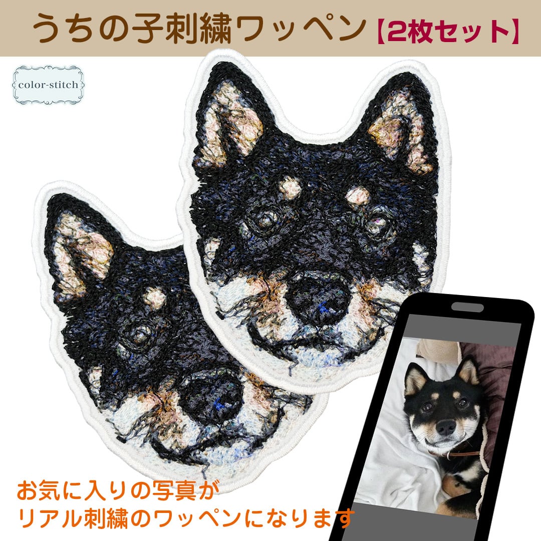 【リアル刺繍ワッペン】オーダーメイド 写真から作るうちの子ワッペン \お得な2枚セット/