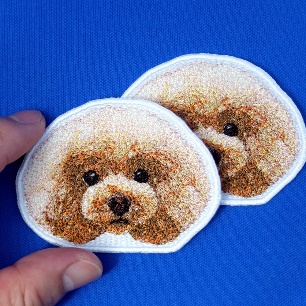 大切なペットの写真からリアル刺繍ワッペンを作製します。