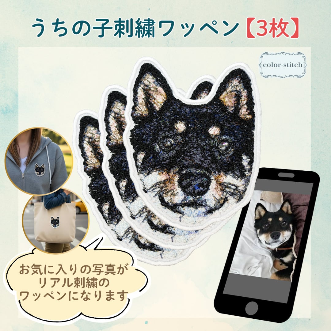 【リアル刺繍ワッペン】オーダーメイド 写真から作るうちの子ワッペン \お得な3枚セット/