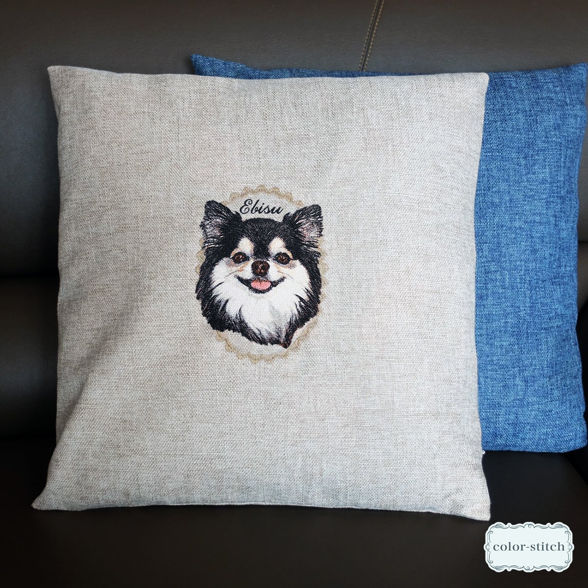 心を伝える贈り物 うちの子刺繍 クッションカバー ペット 犬 猫 子供 ベージュ ネイビー プレゼント オーダーメイド c101