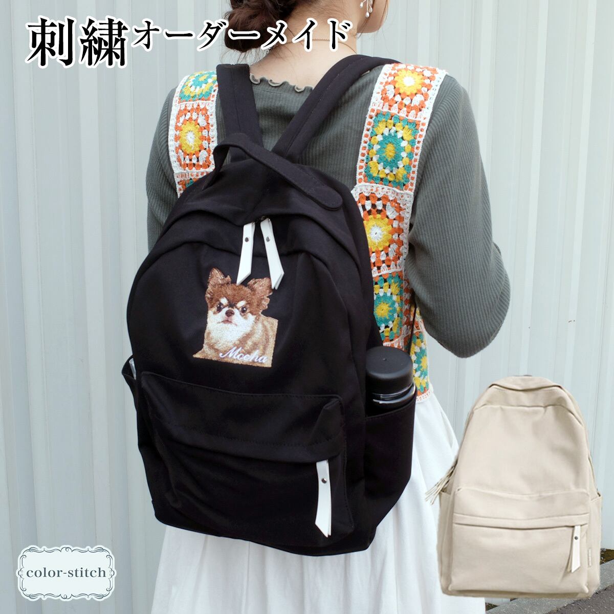 【オーダーメイド】ペット写真からつくるリアル刺繍|うちの子バックパック|ギフト対応
