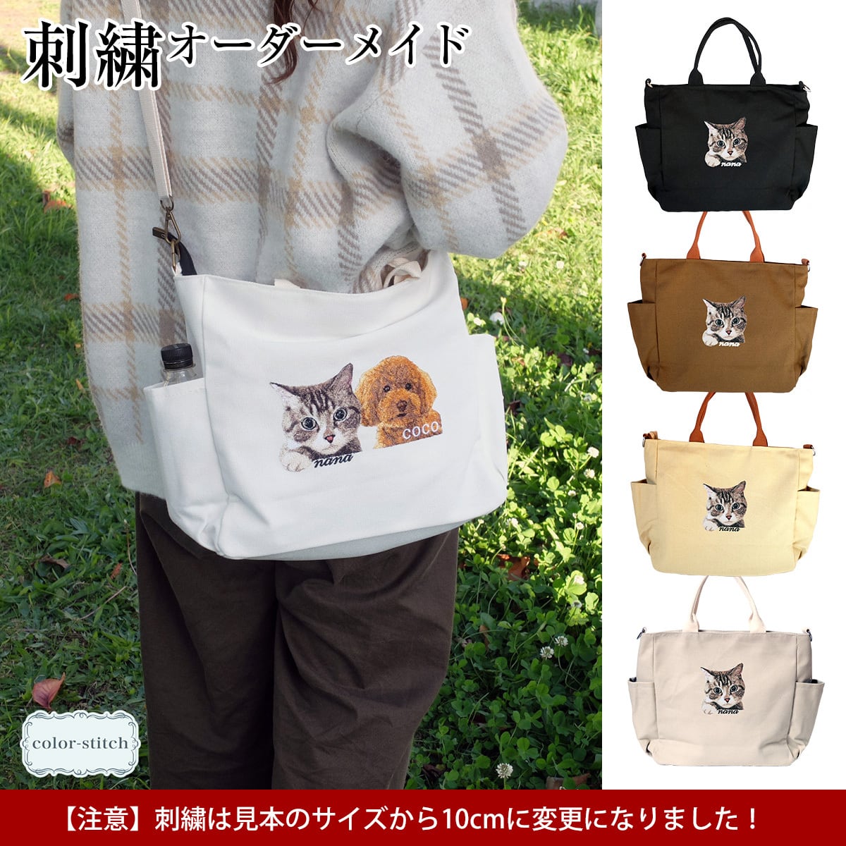 \ワッペンプレゼント/ うちの子刺繍ショルダーバッグ ペット刺繍オーダーメイド お散歩 キャンバス 黒 茶 ベージュ アイボリー b301