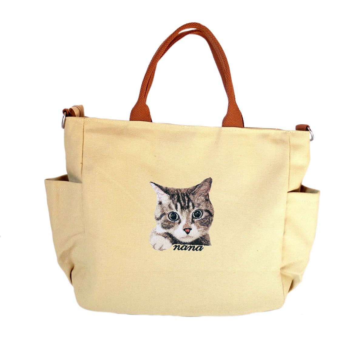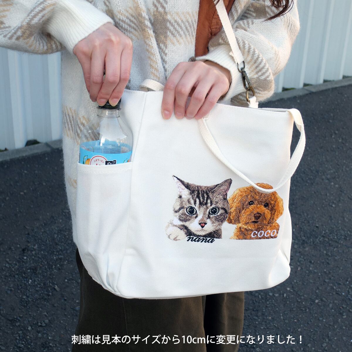 愛犬・愛猫と一緒にお散歩できる刺繍のバッグです。