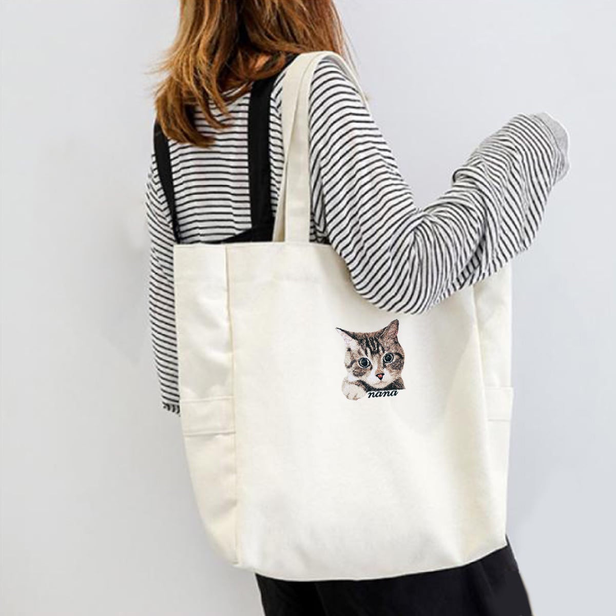 【オーダーメイド】ペット写真からつくるリアル刺繍|大きめトートバッグ|ギフト対応