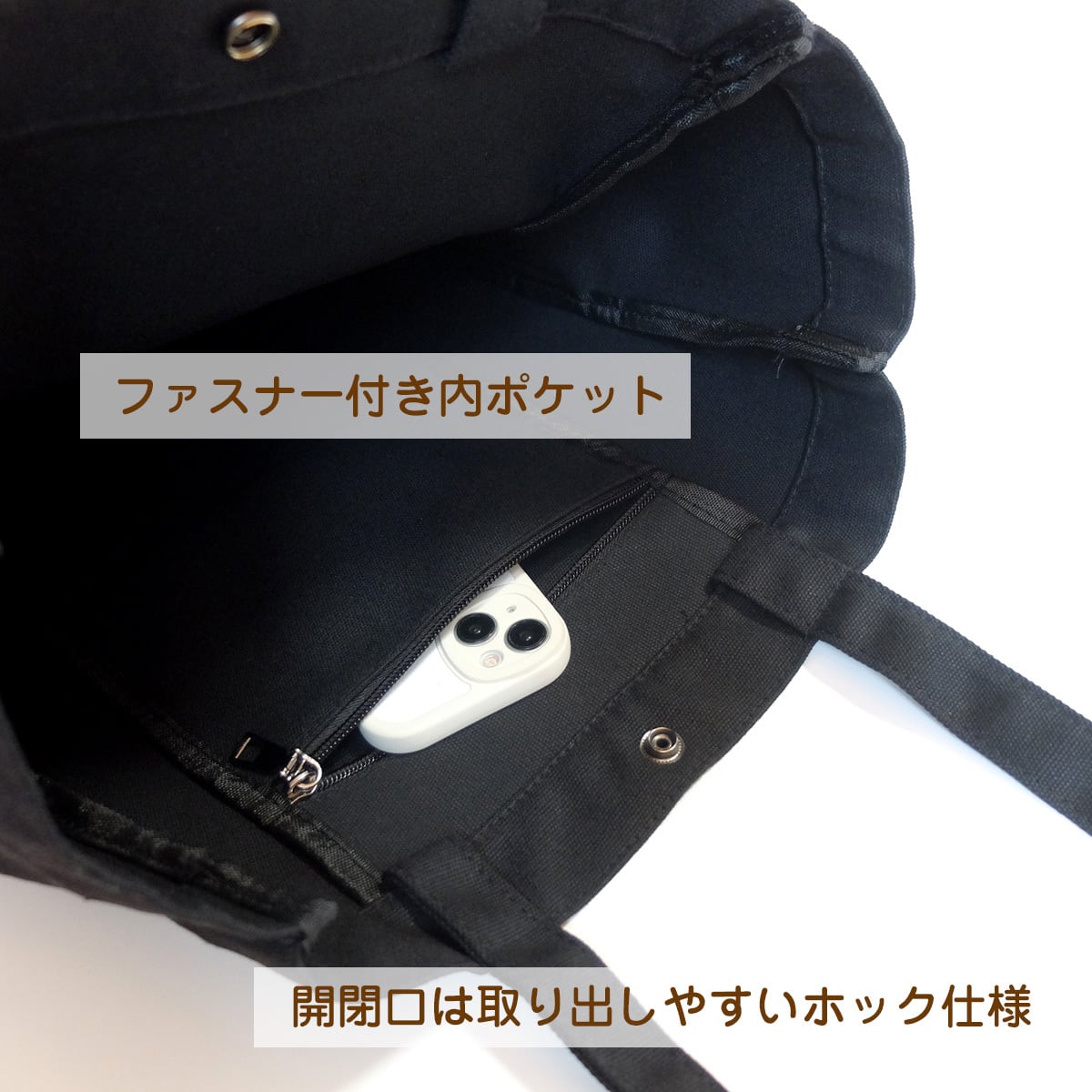 ■ポケット:サイド×2、内側(ファスナー付)×1